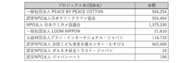 今回は、2024年7月から2025年6月までに販売したプロジェクト商品・約50万点の売上の一部である約350万円を、合計8団体へ寄付金として贈呈します。