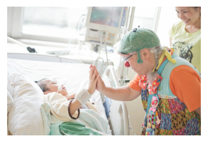 クリニクラウン(臨床道化師)が入院生活を送る子どもたちの病室を定期訪問し、